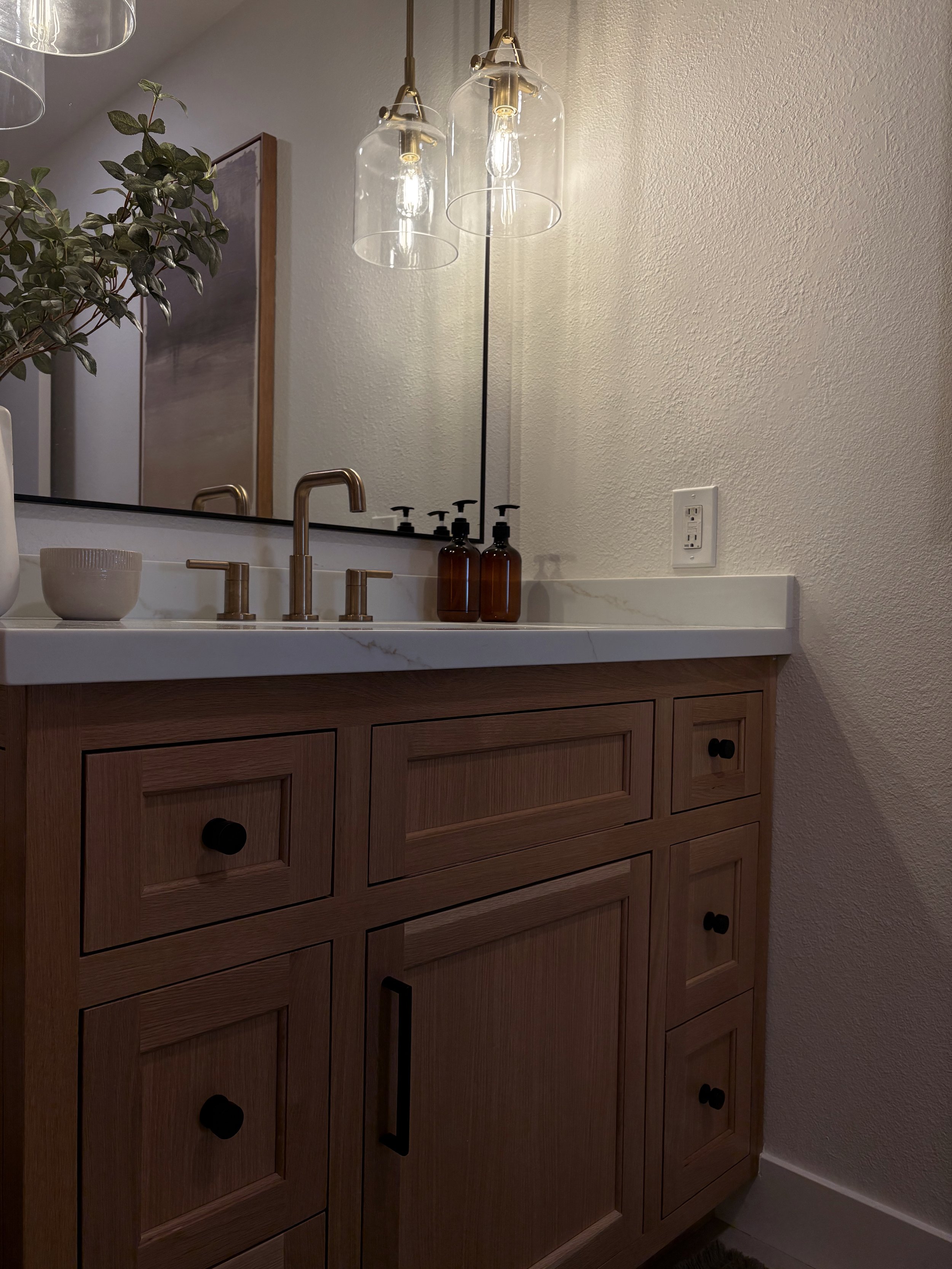 Vanessa is the founder and Principal Designer of M Interiors Co. From watching her dad design and build new construction homes, it sparked a passion for interior design at an early age. Graduating with a Bachelor’s Degree in Interior Design from the Art Institute of California her knowledge of the industry is unmatched. She loves people and is passionate about serving her clients knowing exactly how to deliver what they want and need. Vanessa has that natural eye for design that pushed her to open up her own firm to create beautifully designed homes. When she’s not working, you can find her creating memories with her family and 2 pups, worshipping at Church, and drinking multiple cups of coffee.